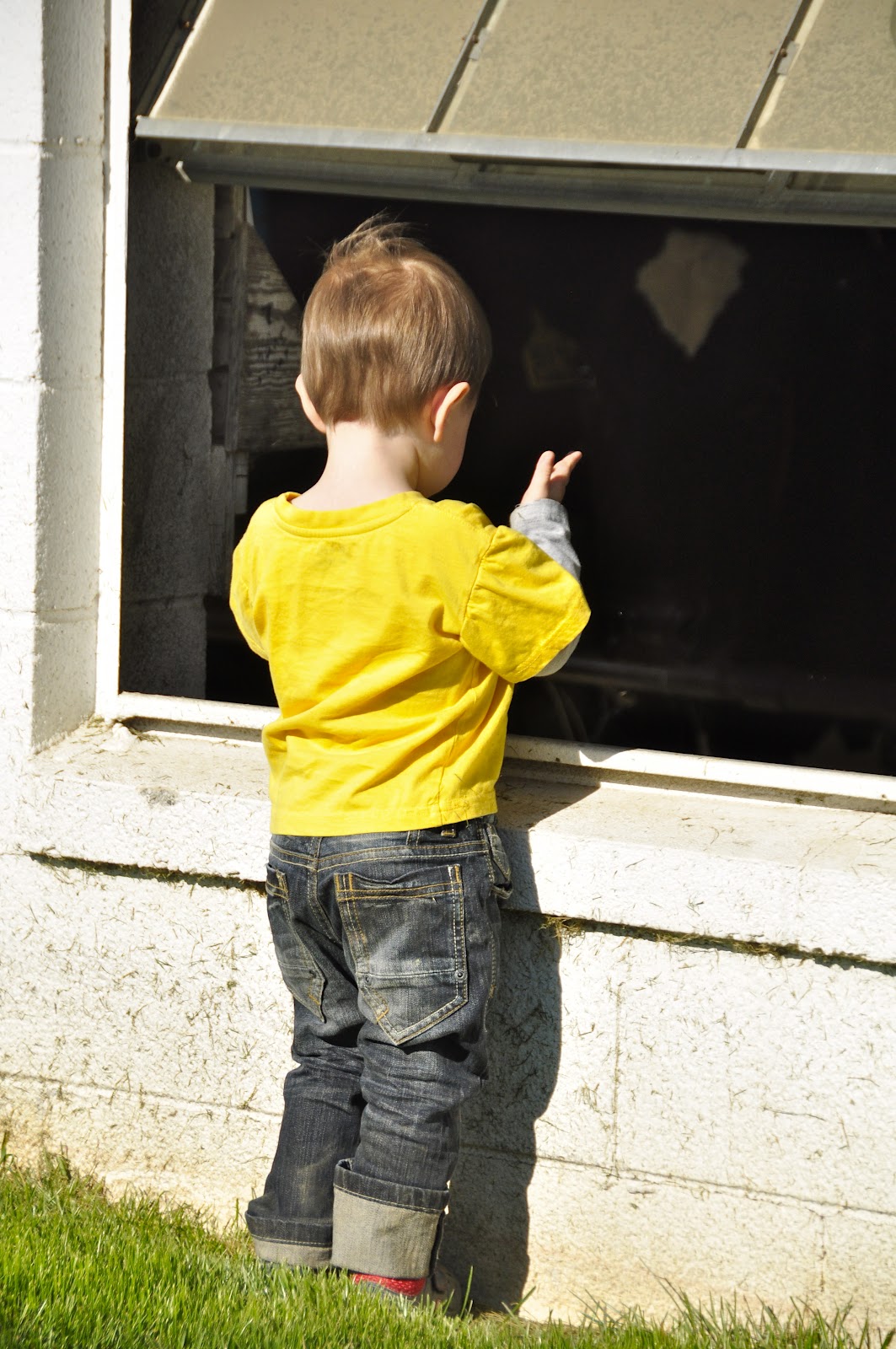 Ethan LOVED playing on all the farm equipment and playing peekaboo with the cows.